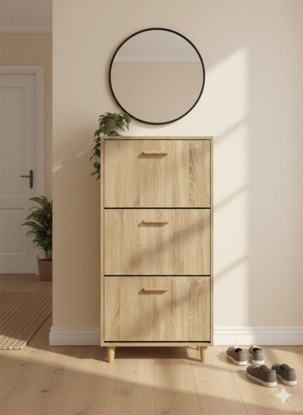 Meuble à Chaussures 3 Portes + 1 Tiroir – Beige & Blanc