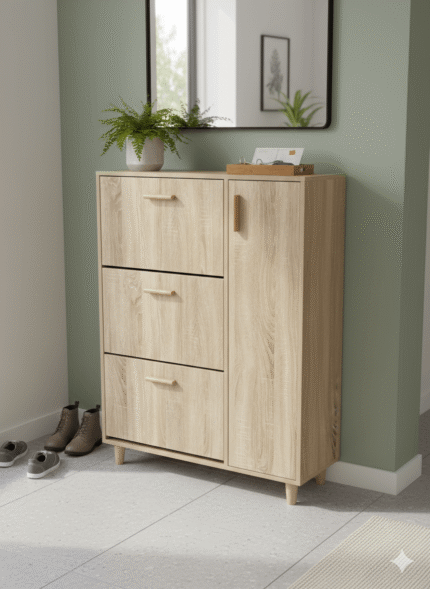 Meuble a chaussure 3Tiroirs et 1 Porte Beige