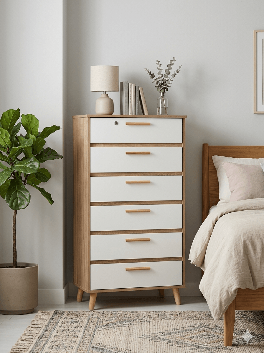 Commode 6 Tiroirs Beige & Blanc – Style Scandinave