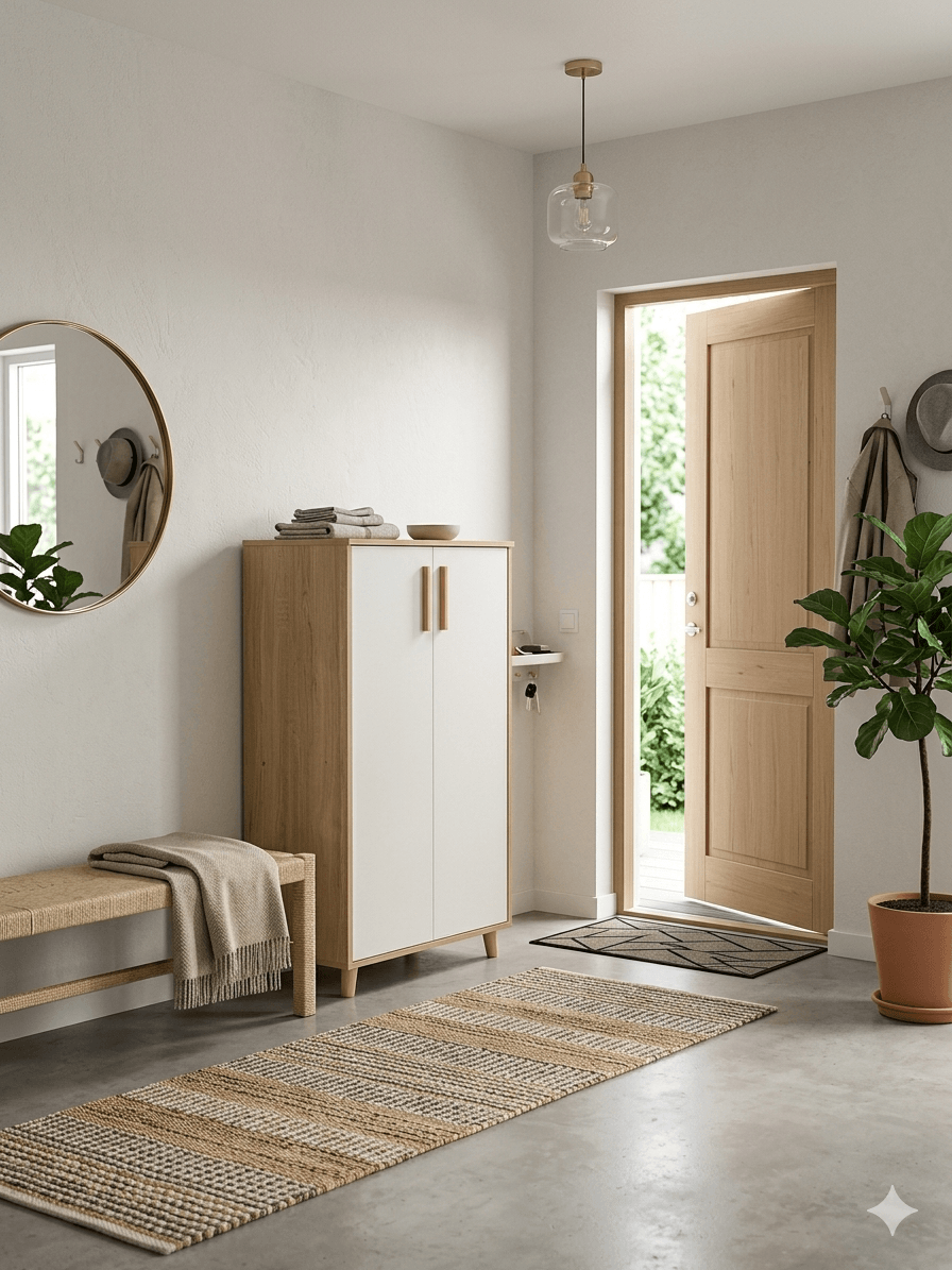 Meuble à Chaussures 2 Portes Scandinave Beige & Blanc 4T