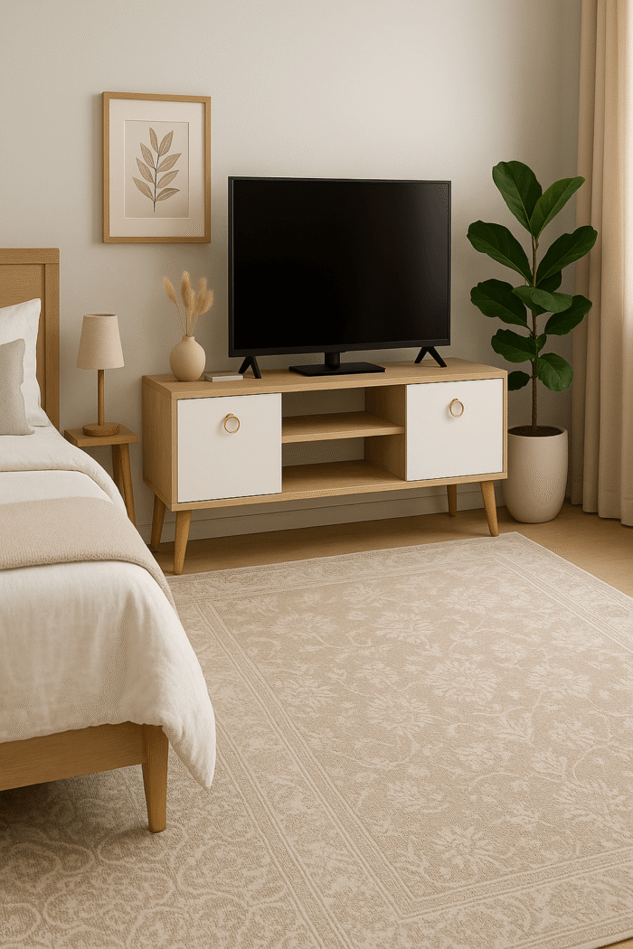 Alliant design scandinave et praticité, il offre un large espace pour téléviseur et rangements.